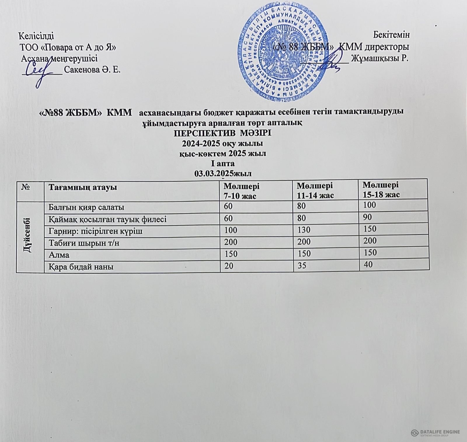 03.03.2025 ж. ас мәзірі (фотосуреті)
