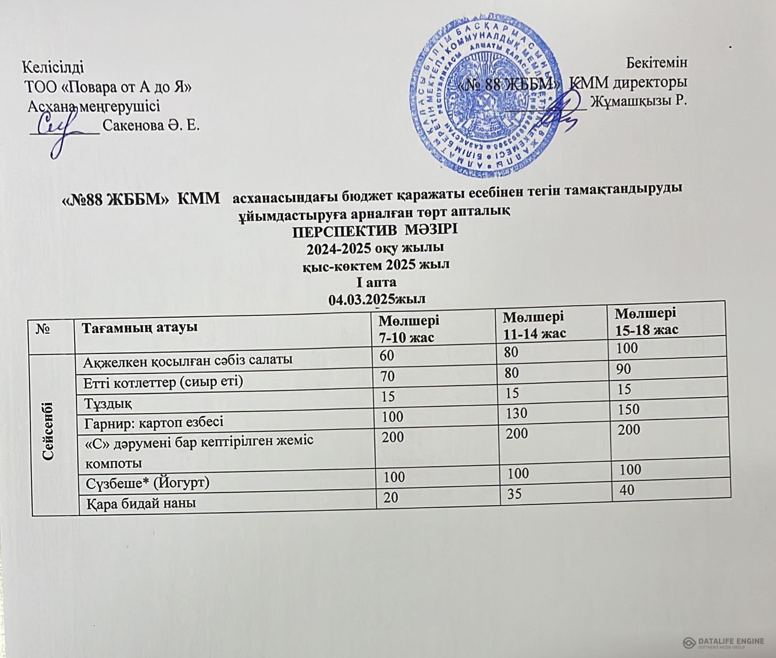 04.03.2025 ж. ас мәзірі (фотосуреті)