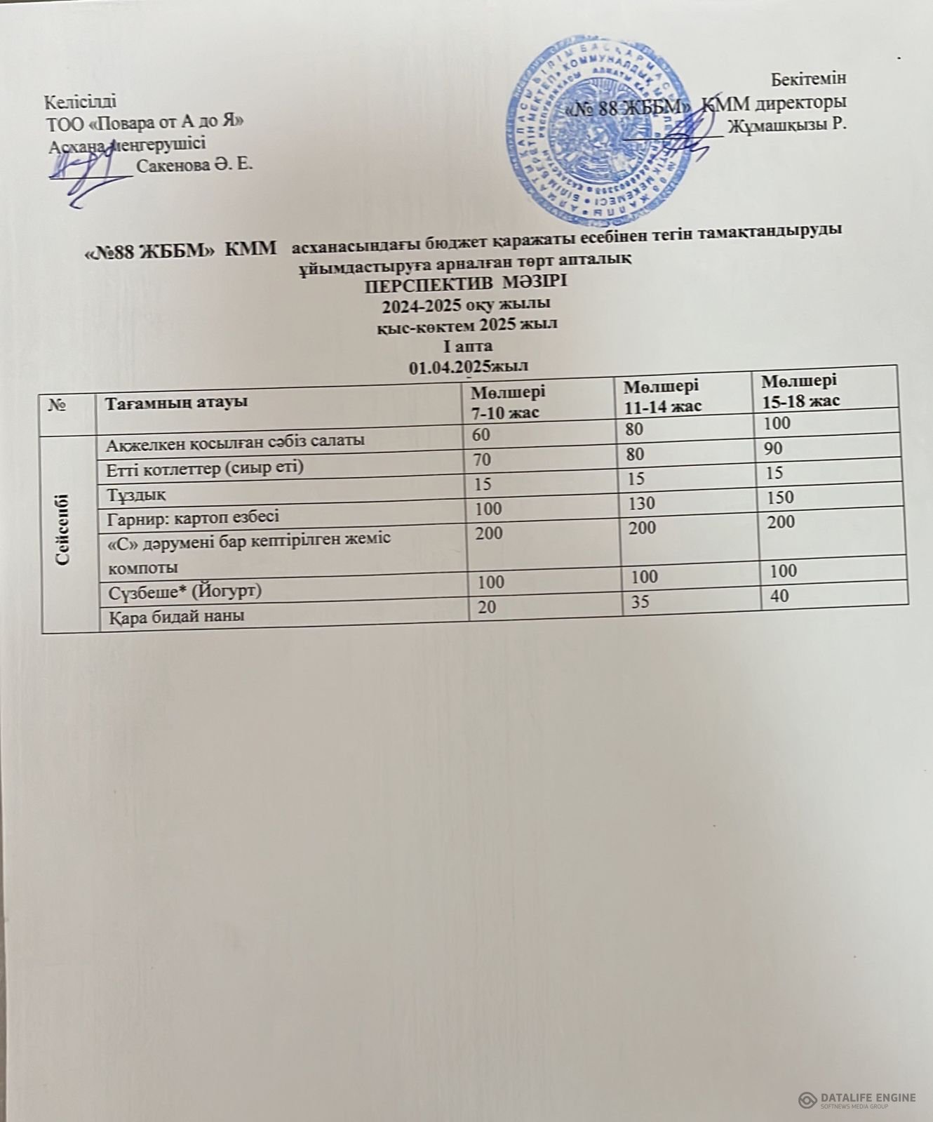 01.04.2025 ж. ас мәзірі (фотосуреті)