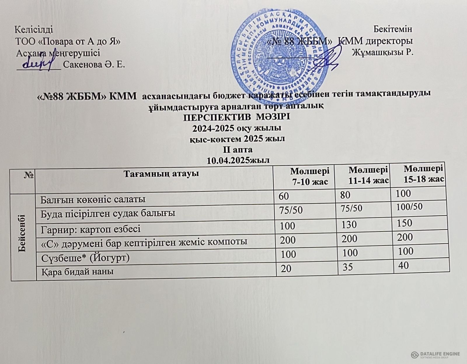 » 10.04.2025 ж. ас мәзірі (фотосуреті)
