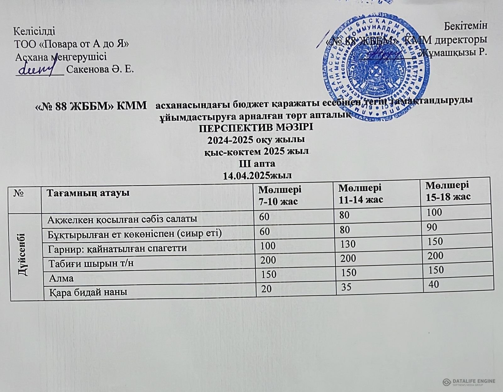 14.04.2025 ж. ас мәзірі (фотосуреті)