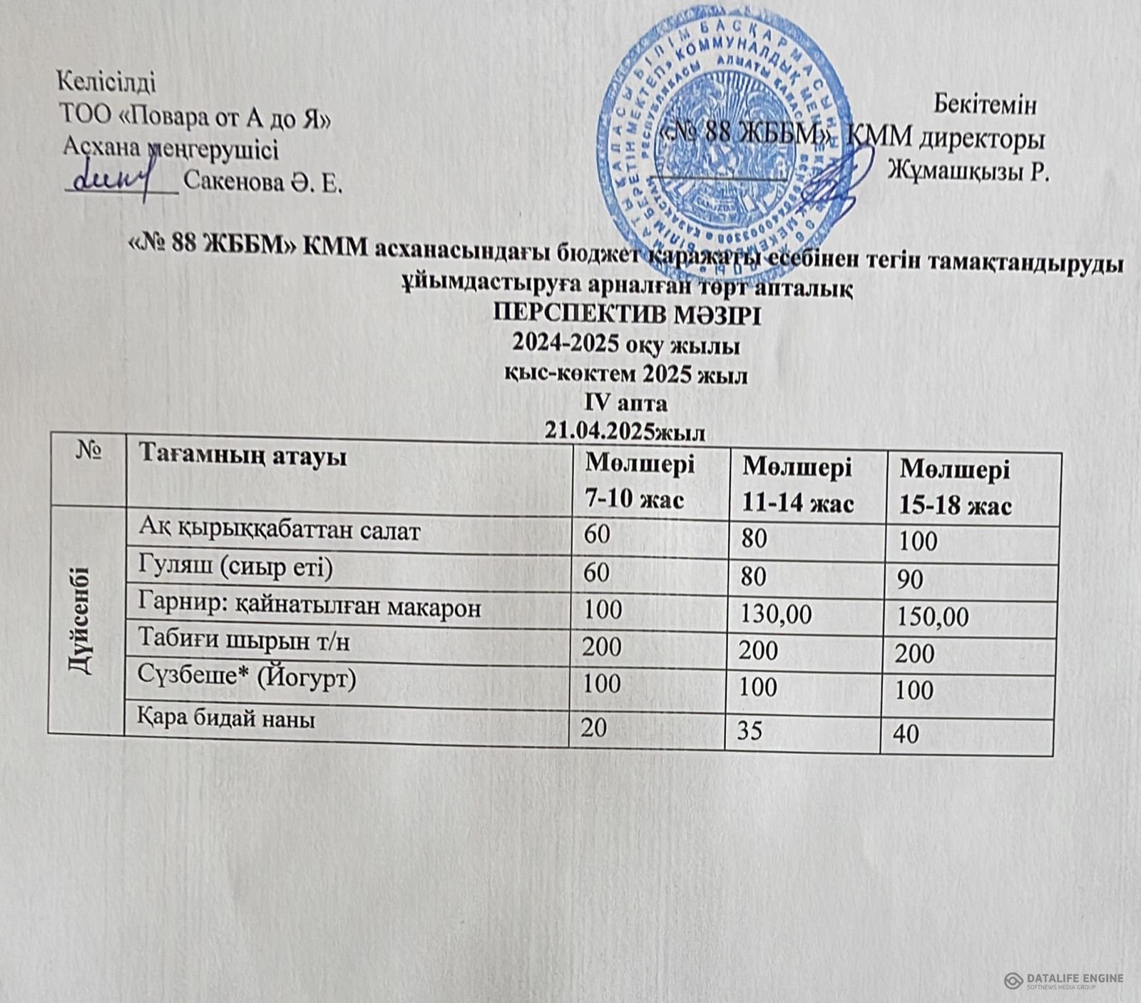 21.04.2025 ж. ас мәзірі (фотосуреті)