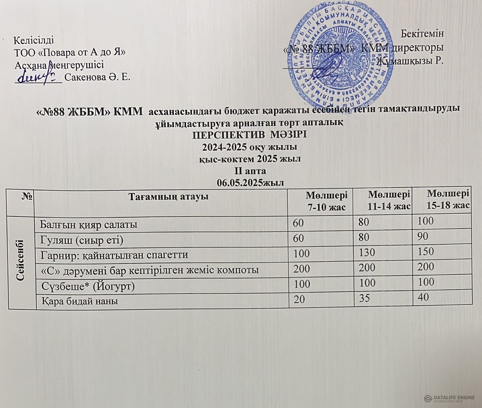 » 06.05.2025 ж. ас мәзірі (фотосуреті)