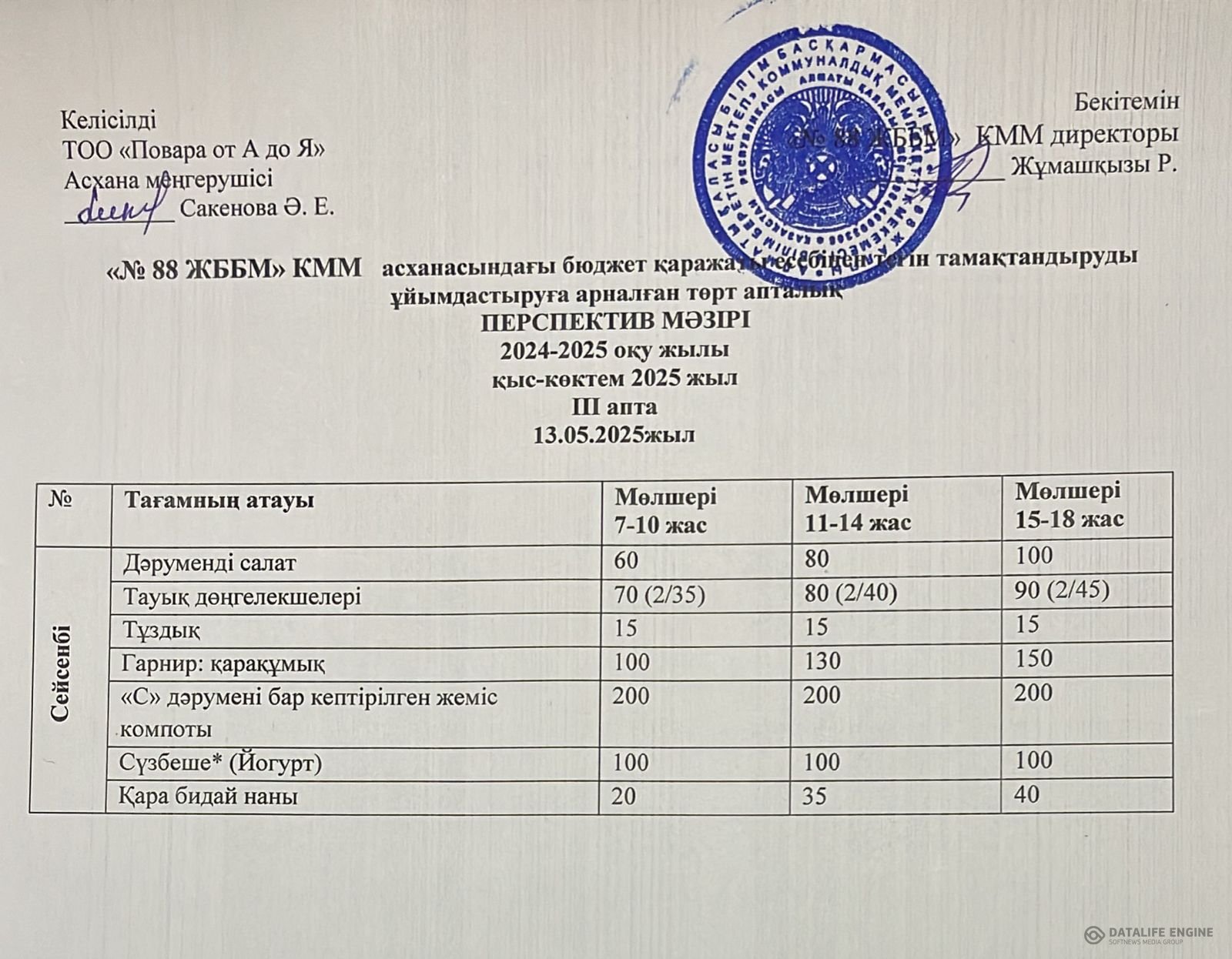 13.05.2025 ж. ас мәзірі (фотосуреті)