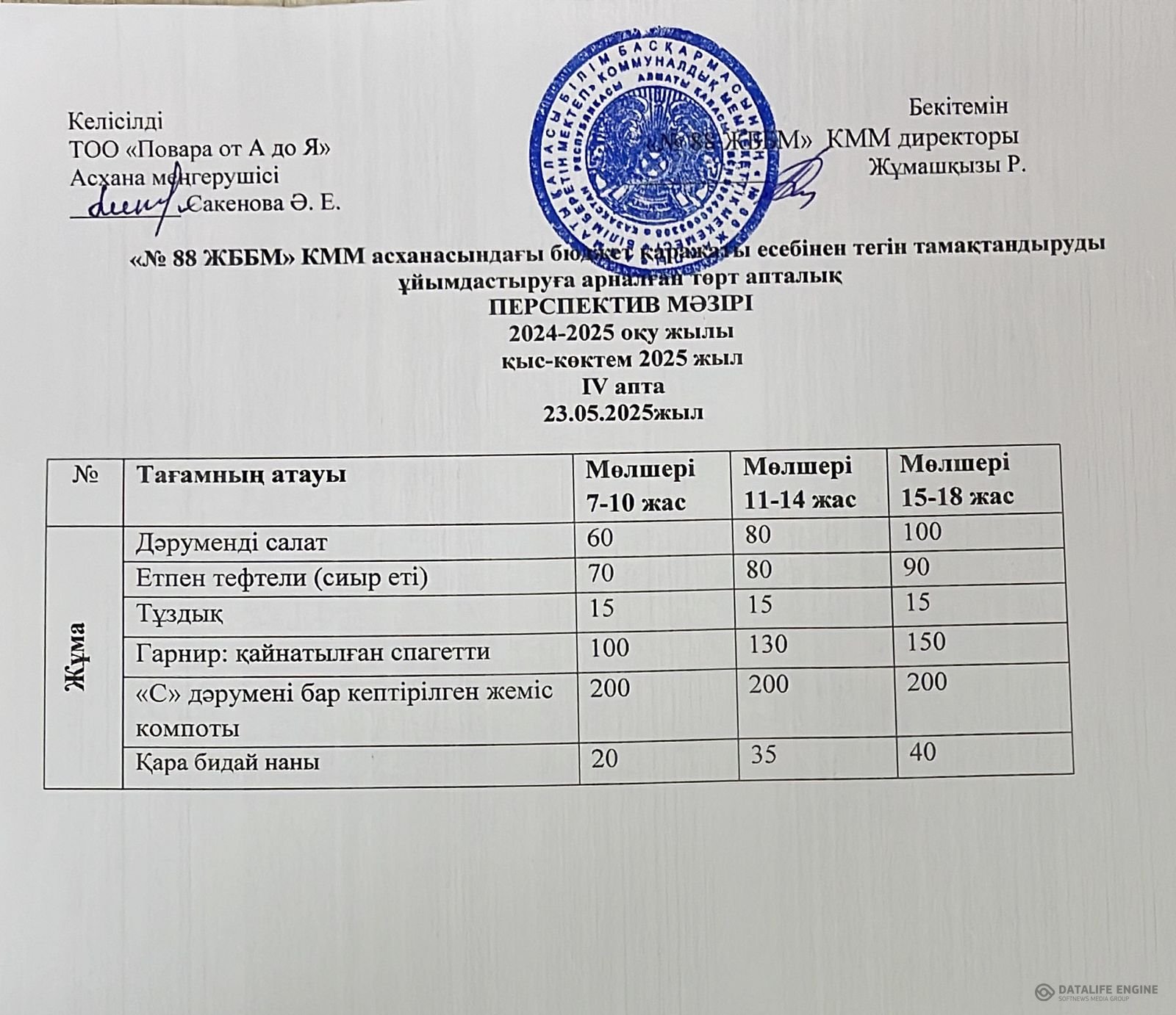 » 23.05.2025 ж. ас мәзірі (фотосуреті)