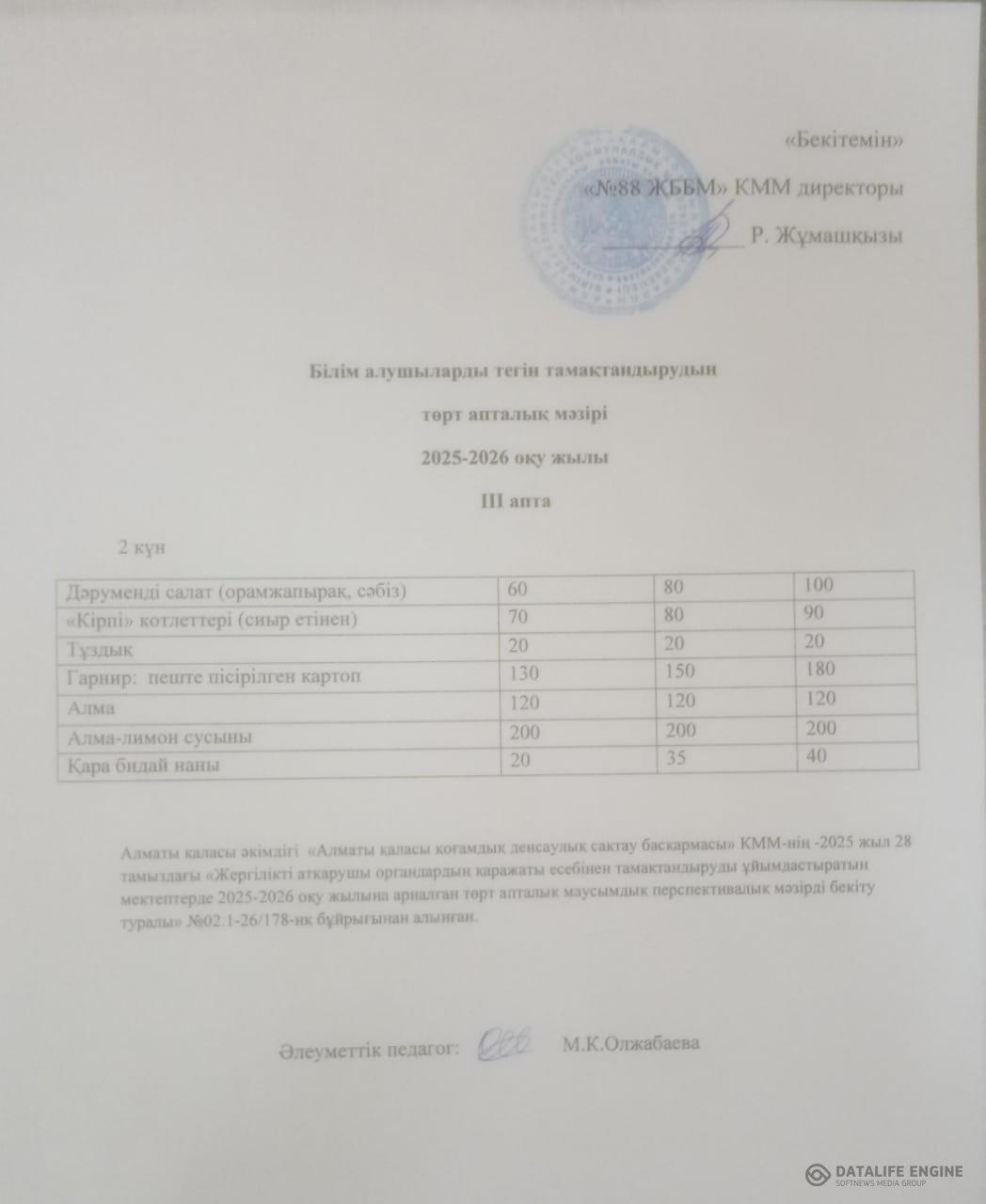 01.10.2025 ж. Ас мәзірінің (фотосуреті)